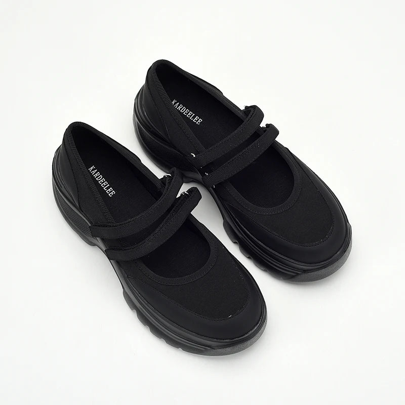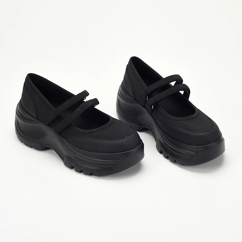 Stylish & Comfy – Black Floral Thick-Sole Sneakers