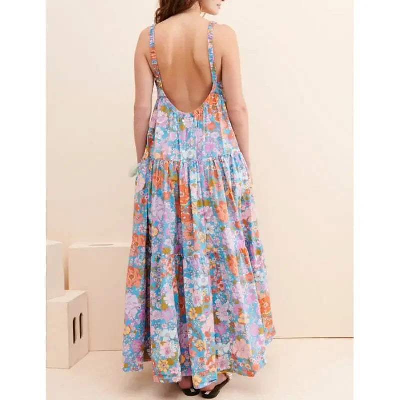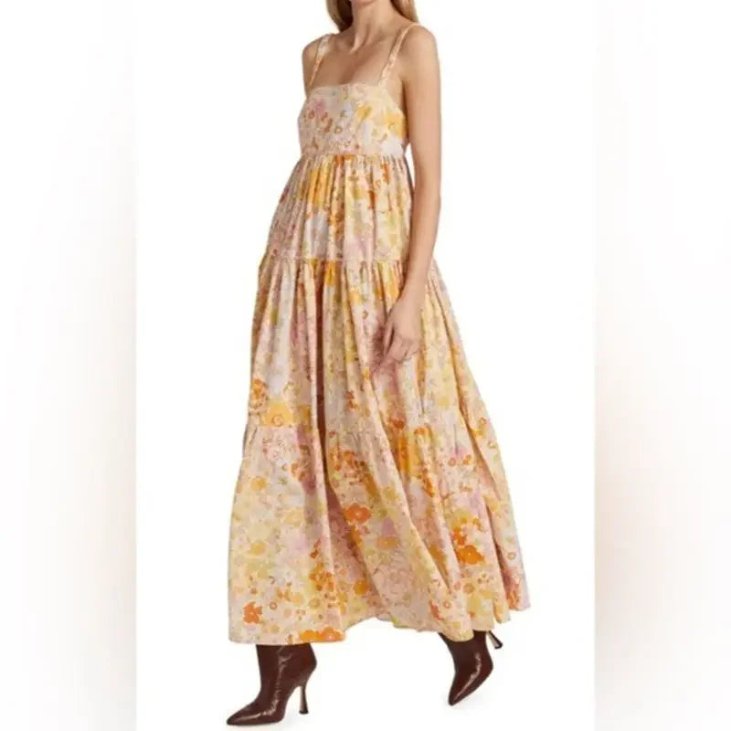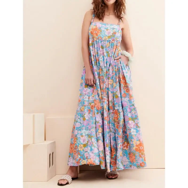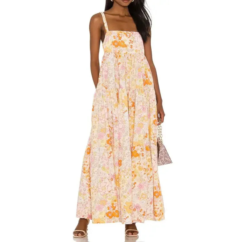 The square neckline and sleeveless straps bring an airy, fresh vibe, while the playful print adds charm to your wardrobe.
