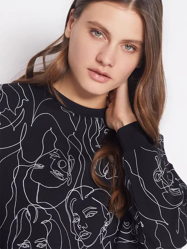 Stay Warm & Stylish – Vintage Print O-Neck Top