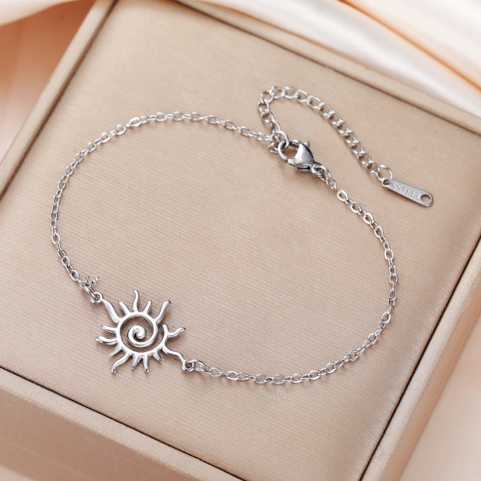 Elevate your accessory collection with the Skyrim-Inspired Sun Bracelet. Crafted from durable stainless steel with a fine bezel setting, this bracelet is perfect for daily wear across all seasons. The sleek link chain and secure lobster clasp provide both style and functionality, while the round sun motif adds a trendy, mystical touch. Click now to embrace a piece that combines fashion, durability, and subtle elegance!