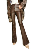 Women's Stretch Leather Trousers Mid Waist & Flared