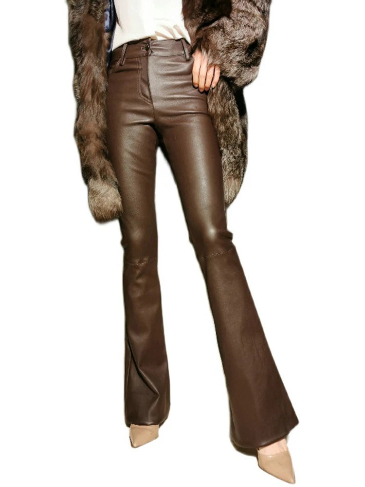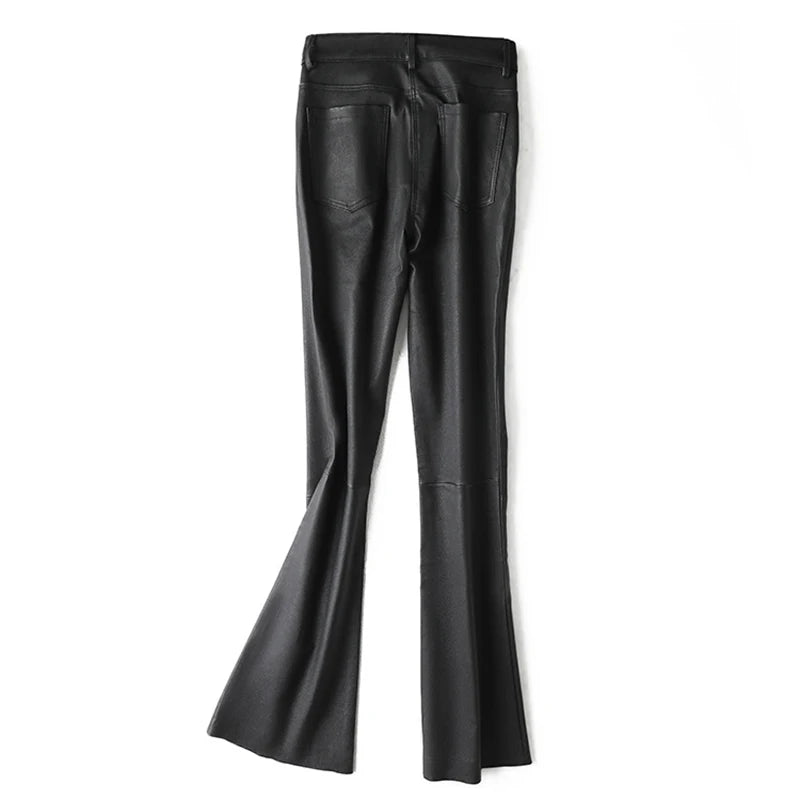 Luxury Stretch Leather Flared Trousers – Genuine Sheepskin Elegance